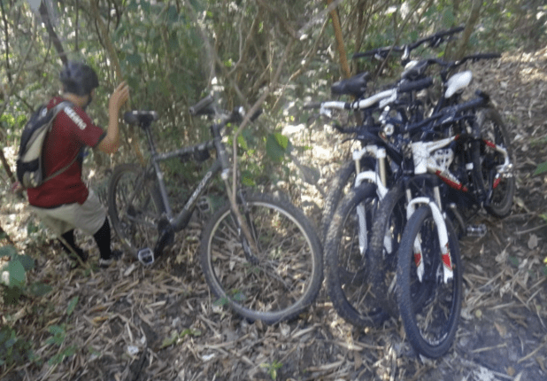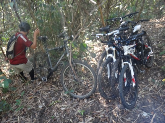 As bikes deixadas na mata antes de descer para a cachoeira do Banespinha